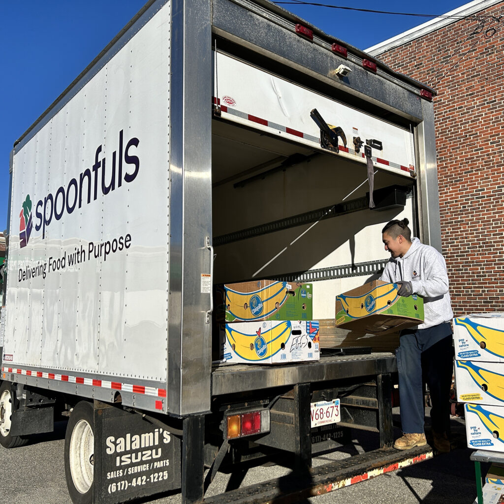 Spoonfuls recovers fresh and healthy food from grocery stores, produce wholesalers, farms, and farmers’ markets, helping the Newton Food Pantry serve its clients.